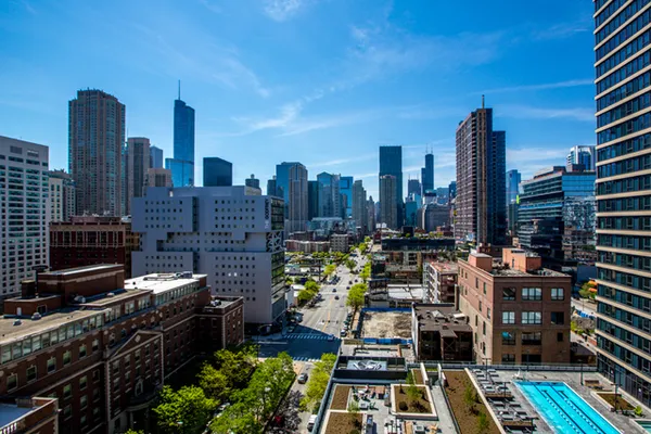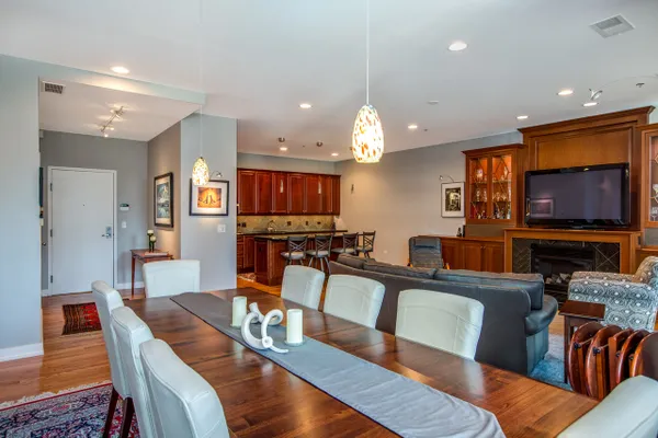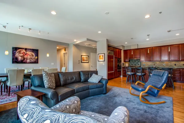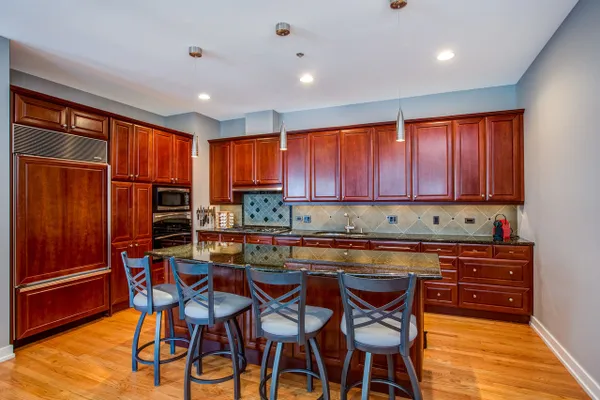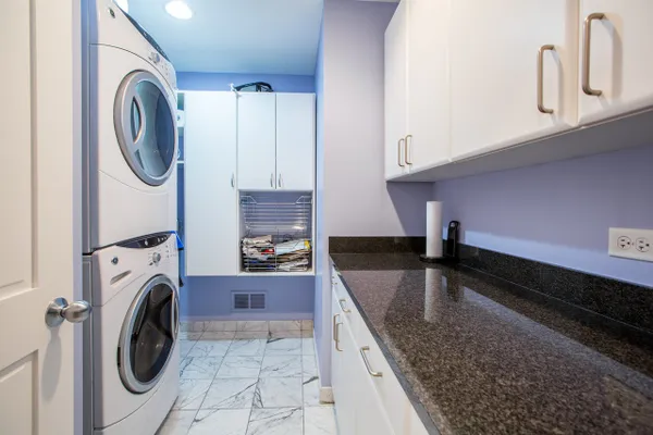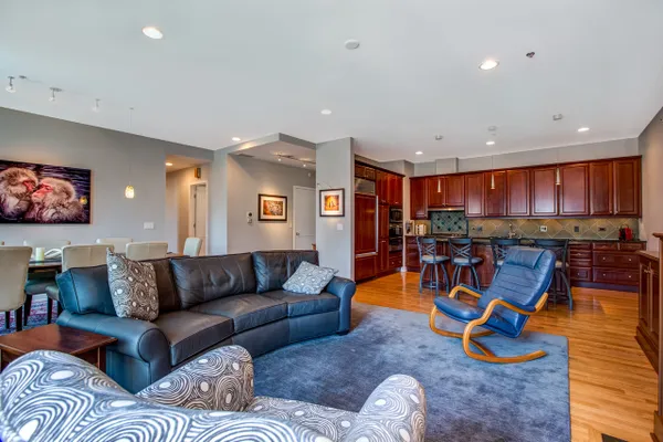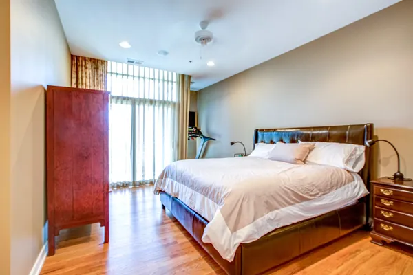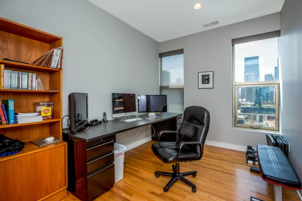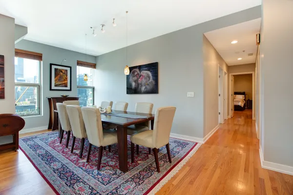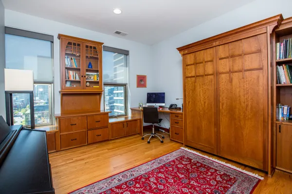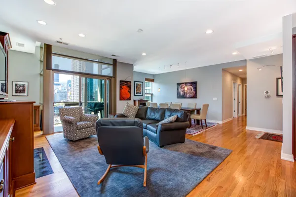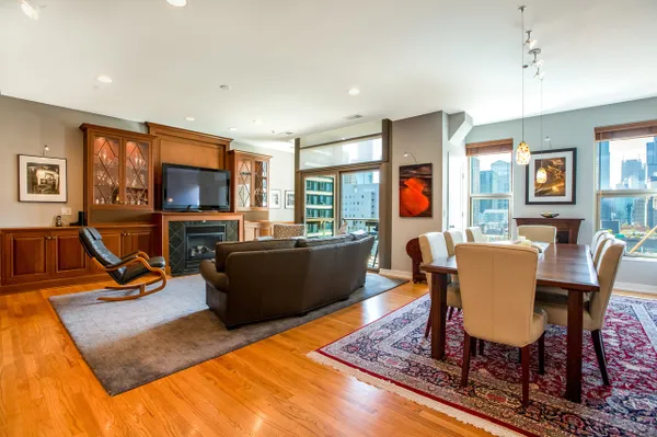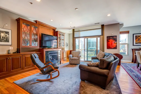 Gorgeous River North condo with 1968 s.f. of living space! Garage parking included! This high floor unit features an open granite kitchen with huge center island, large living room with fireplace and custom built-ins, and huge dining area. The unit boasts not one but two balconies, 3/4 inch red oak floors, recessed lighting, a huge walk-in laundry room, great south views down Lasalle Street from every room, and garage parking. The private master suite is located at the far end and features a large ensuite double vanity bath and huge custom walk-in closet. There are two additional bedrooms. Bedroom two doubles as an office and bedroom with a built-in Murphy bed and custom built-in desk. This secure, boutique building offers a beautiful lobby and 24-hour doorman. See VIRTUAL TOUR for FLOOR PLAN and more...can be purchased furnished!