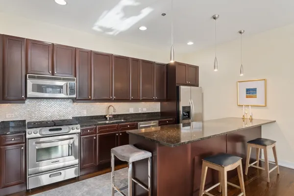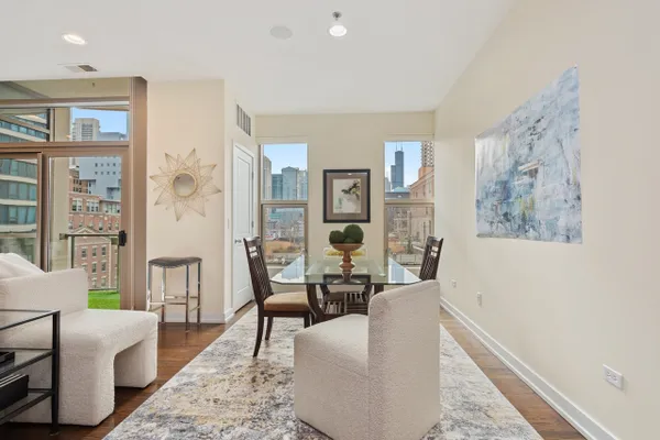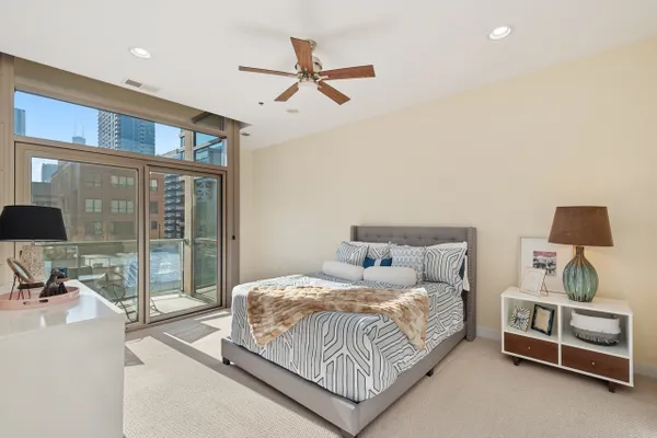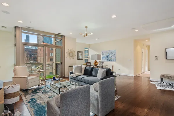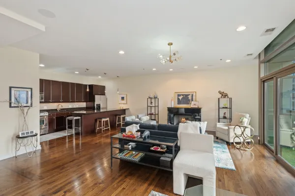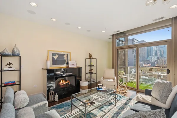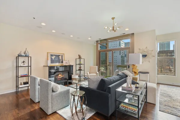 The Best of Both Worlds - Private Luxury 3 bedroom/2.1 bathroom residence in the Heart of River North with 1 indoor parking space. Step inside and you'll find a spacious 1,938 square foot floorplan for today's modern living. The open kitchen with natural stone finishes and large eat in island flows perfectly into the combination Living Room and Dinning Room. Hardwood floors throughout all main living areas and plush berber carpeting in all three bedrooms. The Master suite is tucked privately at the end of a hallway and features a spa bath with oversized shower, huge walk-in closet and private balcony with City views. Other features include 24 hour doorman, real hardwood flooring, gas fireplace, surround sound and 1 indoor parking space! Your opportunity has arrived - make this condo your home!