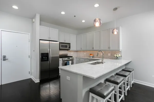 This beautiful 2 bedroom 1.5 bath condo is only one of two in the building! This designer unit was customized over $35,000 in upgrades. Lovingly fused-over extra-thick quarter sawn oak floors, waterworks bathrooms, solid core doors, custom hardware, stainless steel kitchen appliances, extra-large counter space, and Carrara marble set this unit miles apart from anything else in our price range. The second bedroom combines with the 1/2 bath to make for a perfect guest arrangement. Your private balcony is high enough to be above it all. Heated garage parking and extra storage included in this doorman building. Come see what sets us apart.