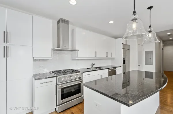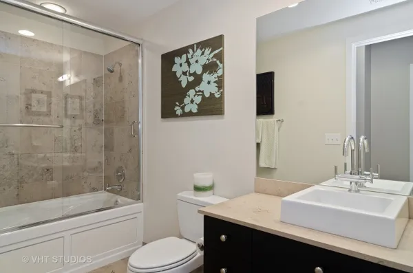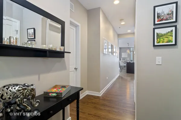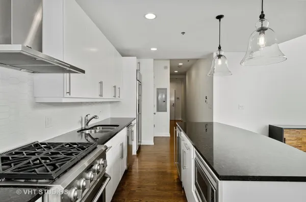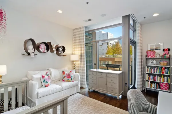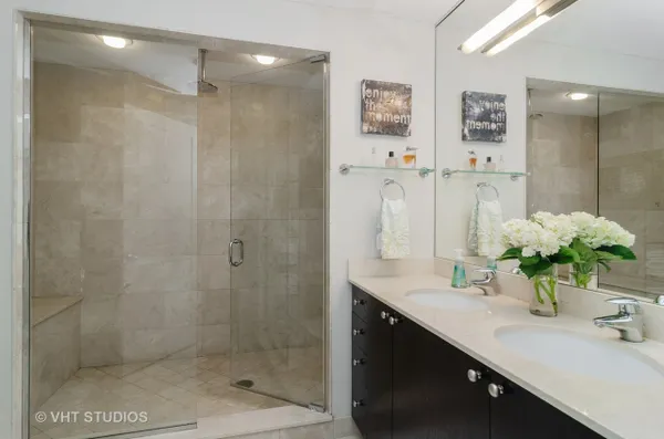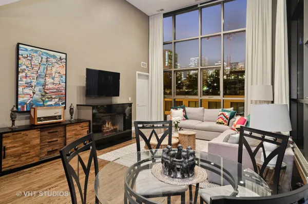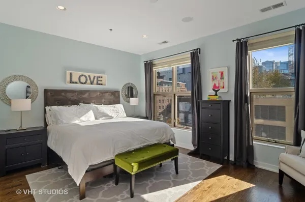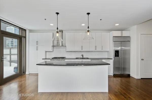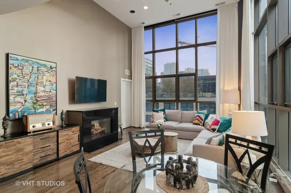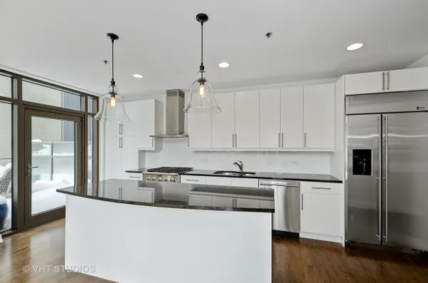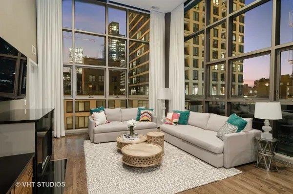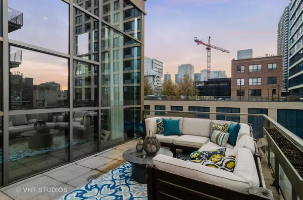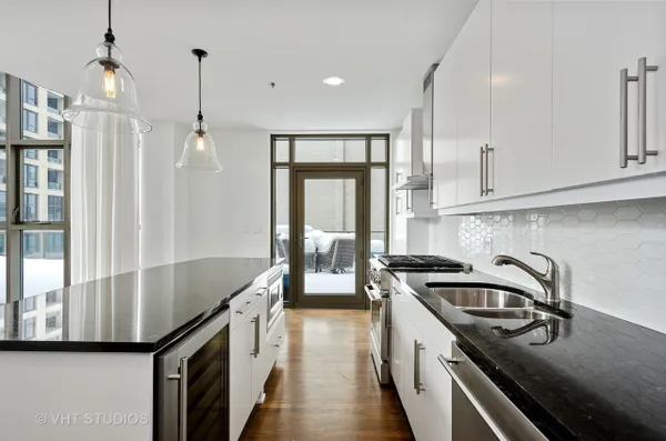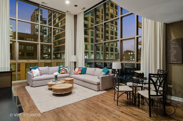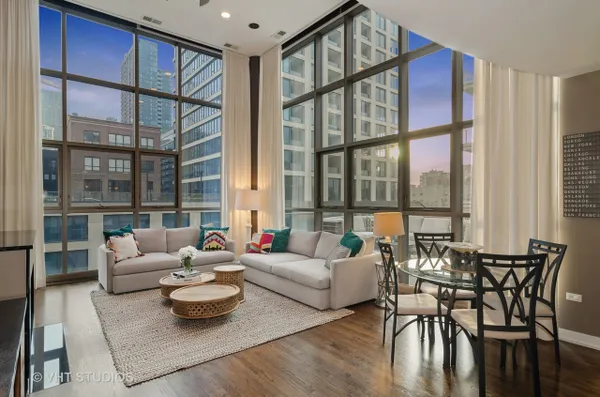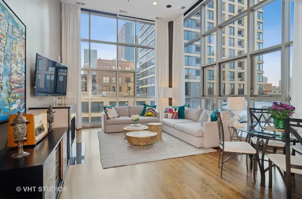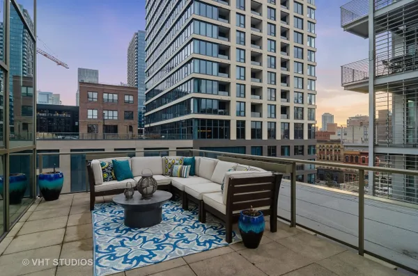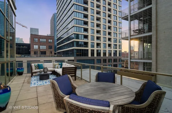 This stunning, spacious, and primely located River North 2 bed, 2 bath condo has all the jaw dropping features to impress. Walk in and be immediately wowed by two walls of 15' floor to ceiling windows! Unit also features gourmet chef's kitchen and entertaining island. Kitchen is open to a wide living and dining room space and also accesses the units PRIVATE 400+ sqft outdoor terrace- perfect for enjoying nice weather in Chicago. Condo also features expansive master bedroom with a large walk in closet and master bathroom featuring double bowl sinks and enormous walk in shower. 2nd bedroom also features walk in closet. Newly bought washer/dryer, attached heated garage parking and storage included. Enjoy this prime location, steps to coffee shops, restaurants, shopping, public transit, and so much more!