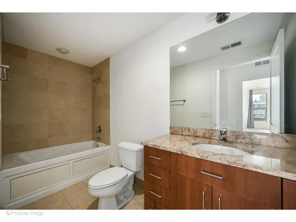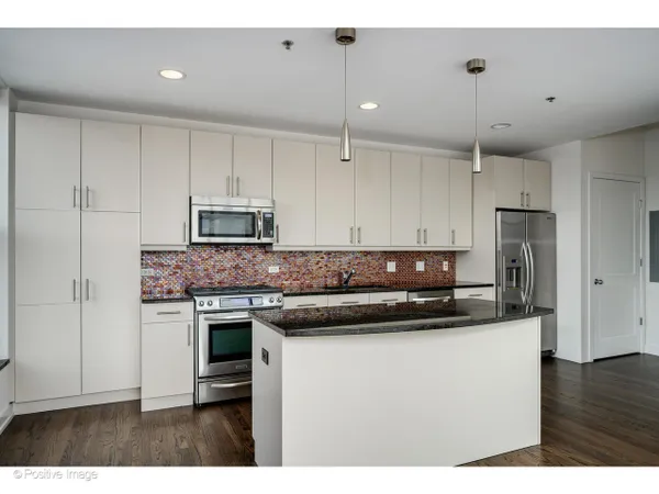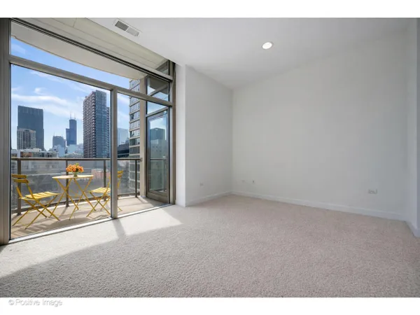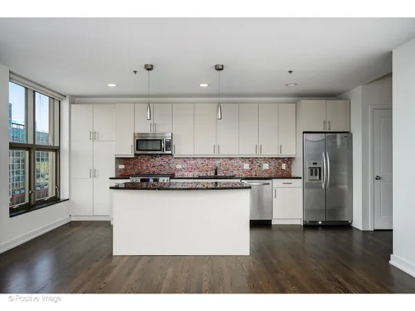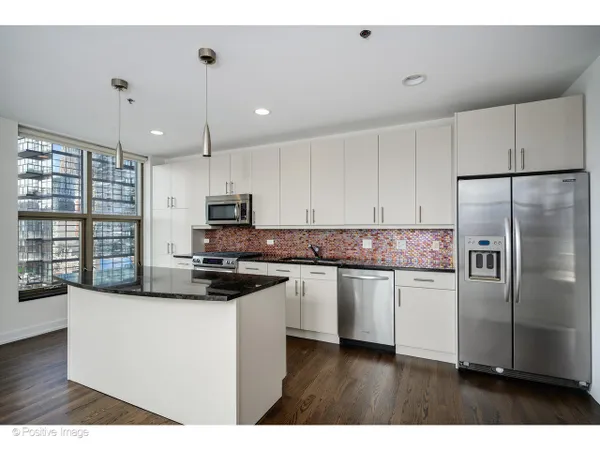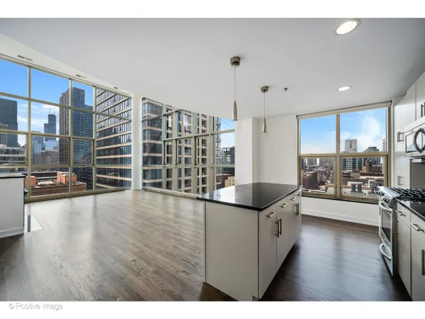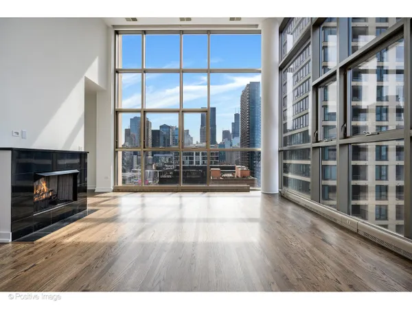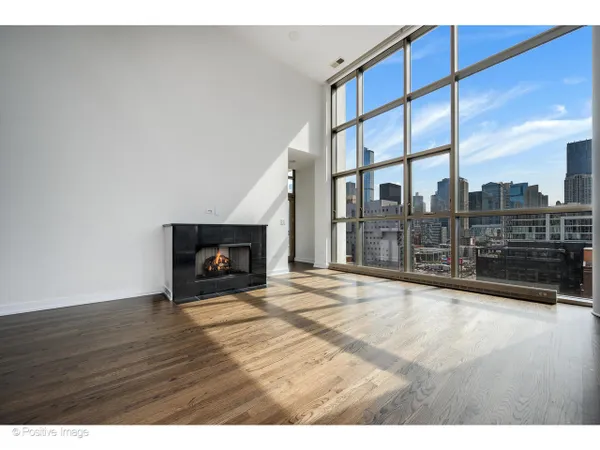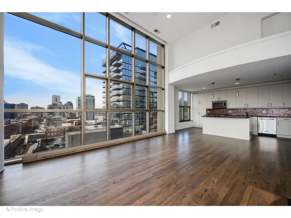 The moment you step inside, the ceilings take hold - 15 feet of open air above you, soaring windows pulling in the light, and a sense of scale that is genuinely rare in the city at any price point. In a boutique 54-unit building in the heart of River North, this two-bedroom, two-bath residence spans approximately 1,563 square feet and offers a combination of dramatic architectural presence and thoughtful, high-quality finishes that make it feel immediately like home. The living and dining area flows together in one generous sweep, anchored by a gas fireplace and framed by south- and west-facing windows that track the sun from afternoon through evening. Hardwood floors run throughout the main living areas, kitchen, and foyer. The kitchen is long and smartly configured with a center island, breakfast bar, granite countertops, stainless steel appliances, and beautiful wood cabinetry - an inviting space for weeknight cooking and weekend entertaining alike. The foyer is proper and gracious, with a coat closet and the kind of proportioned entry that sets the tone of the whole residence. Full-size in-unit washer and dryer complete the main level. The primary bedroom is an exceptional room: large enough to accommodate a king bed and sitting area comfortably, with an organized closet and a marble ensuite bath featuring a double bowl vanity and an oversized rainforest shower. The second bedroom is equally well-scaled, served by a second full bath. A private balcony off the living area offers south and west city views - the Chicago skyline as a daily backdrop. At just 54 residences across 15 floors this is truly a boutique building in the heart of it all. One heated garage parking space is included. River North surrounds you: world-class galleries and restaurants, vibrant nightlife, easy access to the lakefront, the Magnificent Mile, and the pulse of one of Chicago's most beloved and walkable neighborhoods.